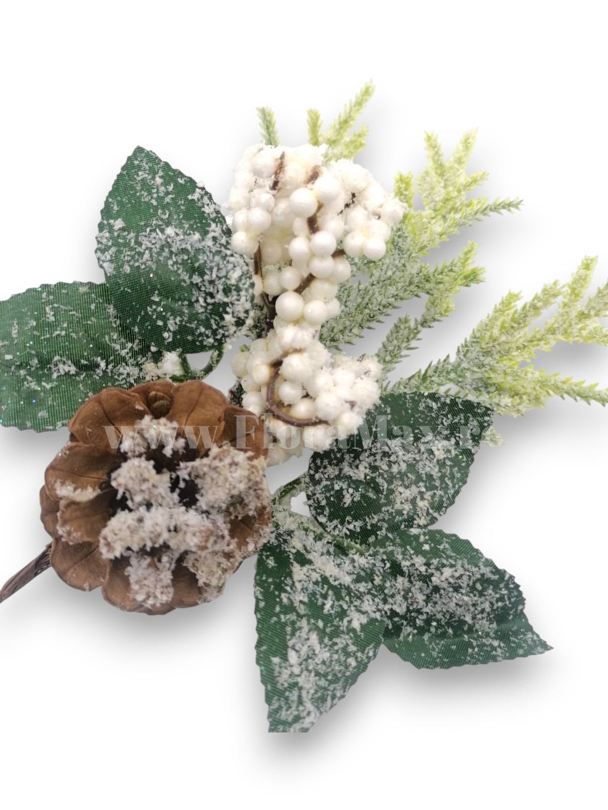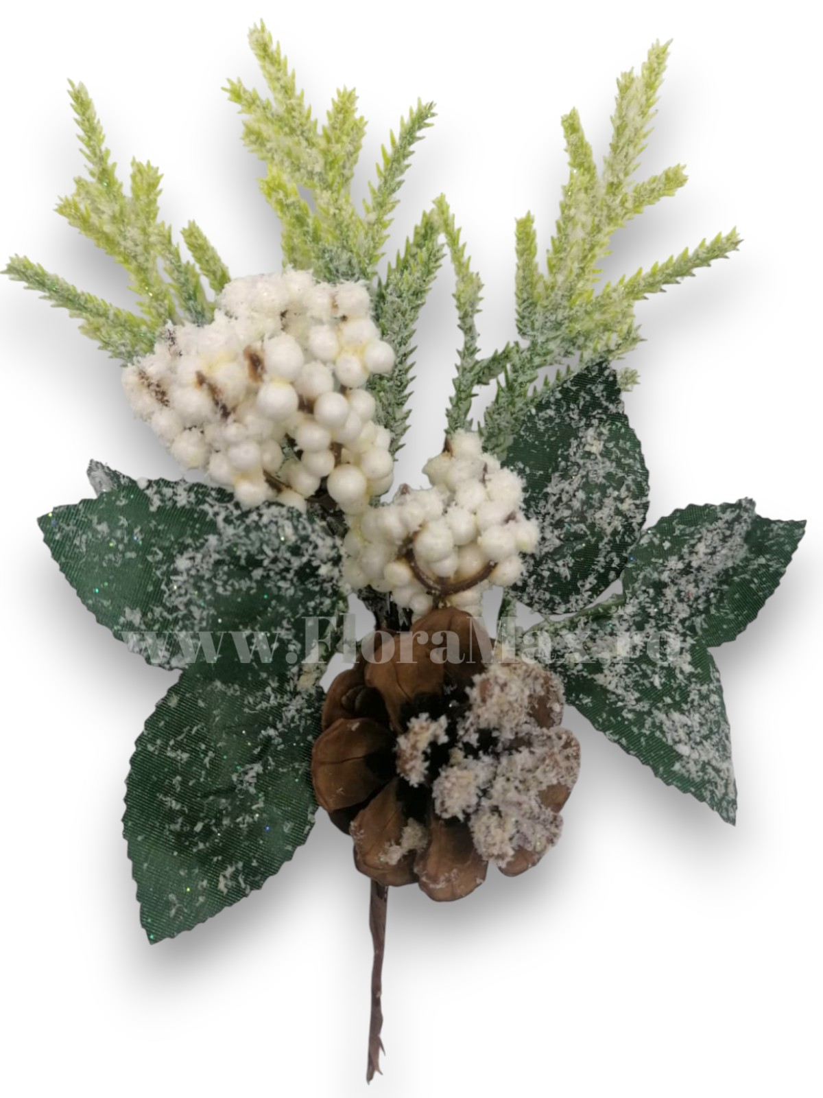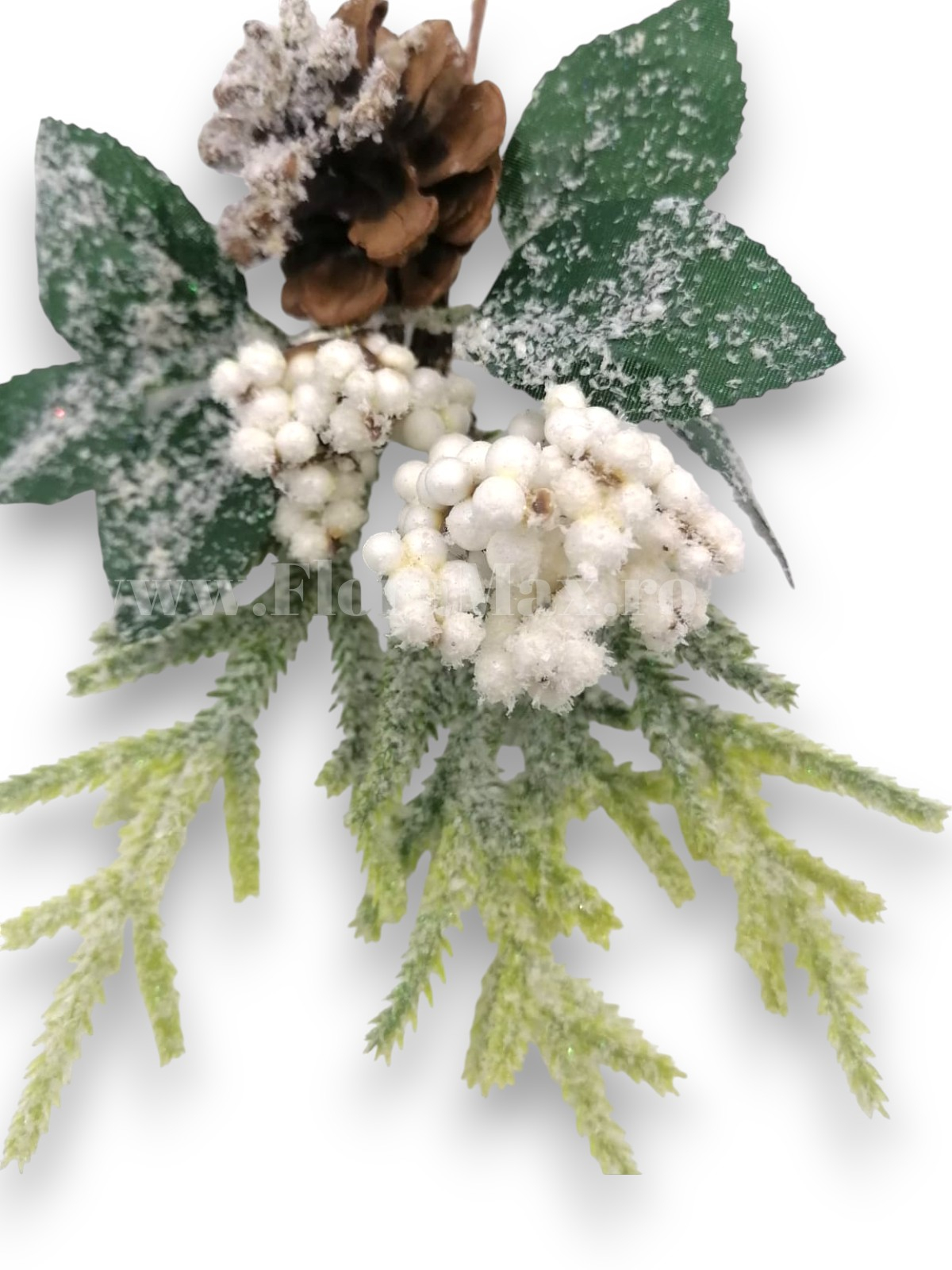 Crenguta Craciun cu zapada bilute albe, si con brad 23 cm