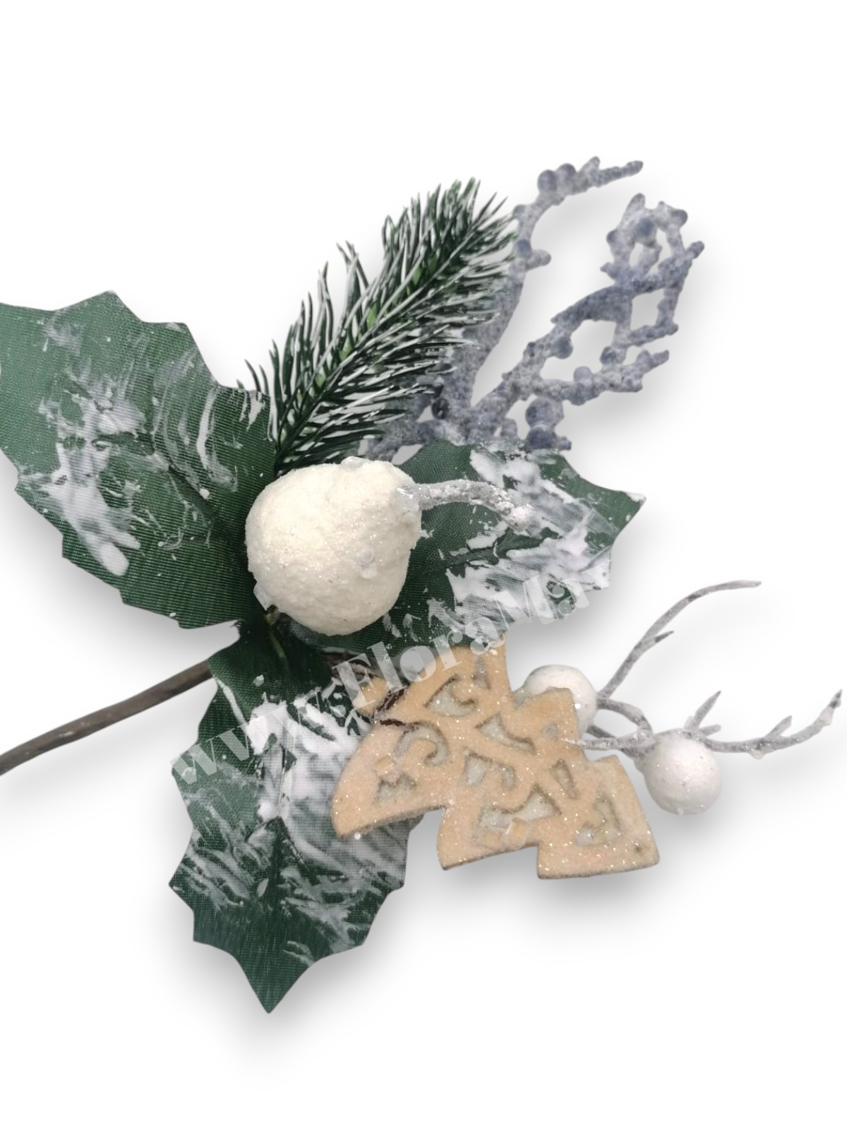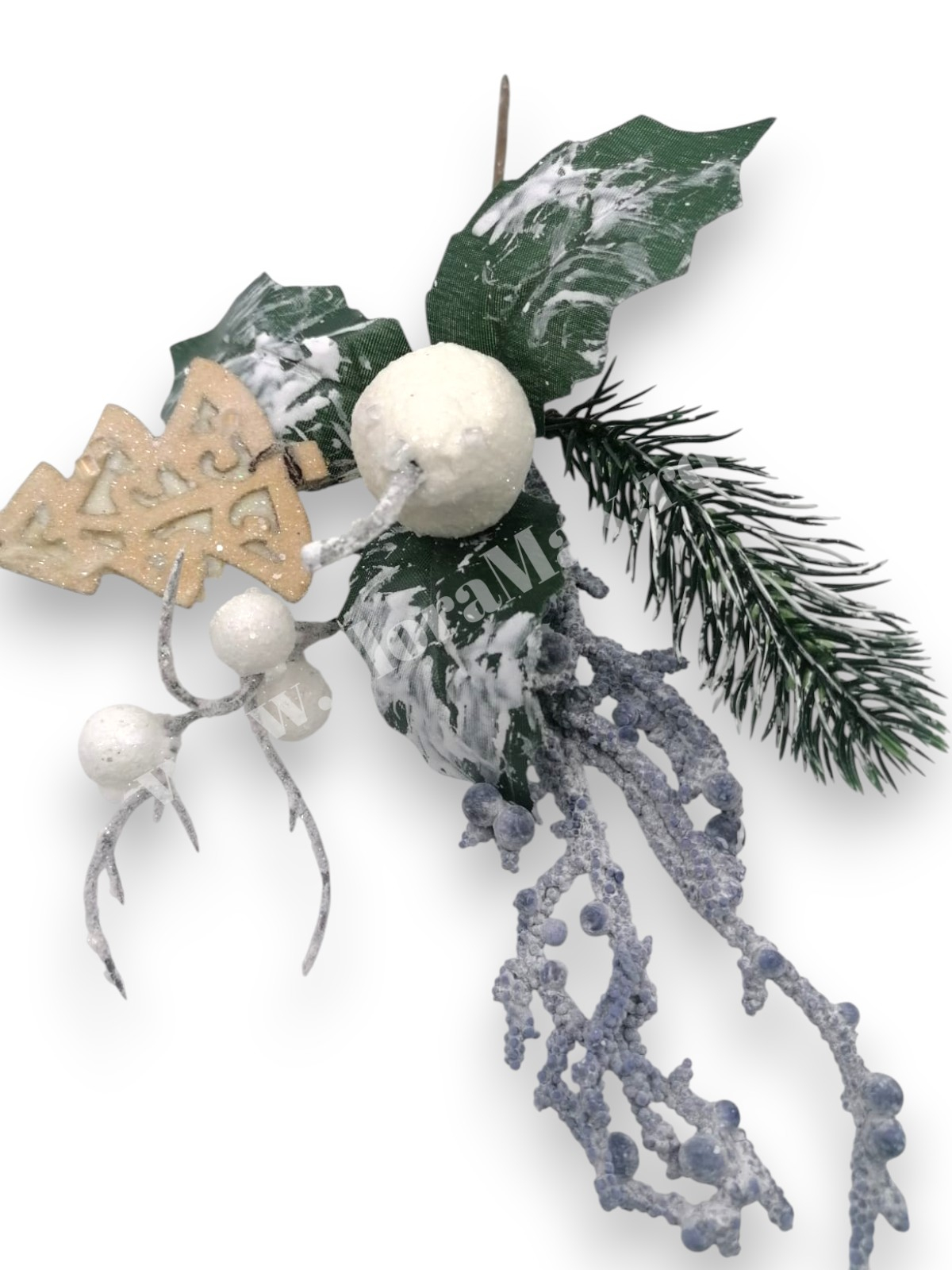 Crenguta brad artificial ninsa pentru aranjamente Craciun cu para alba si sclipici 28 cm