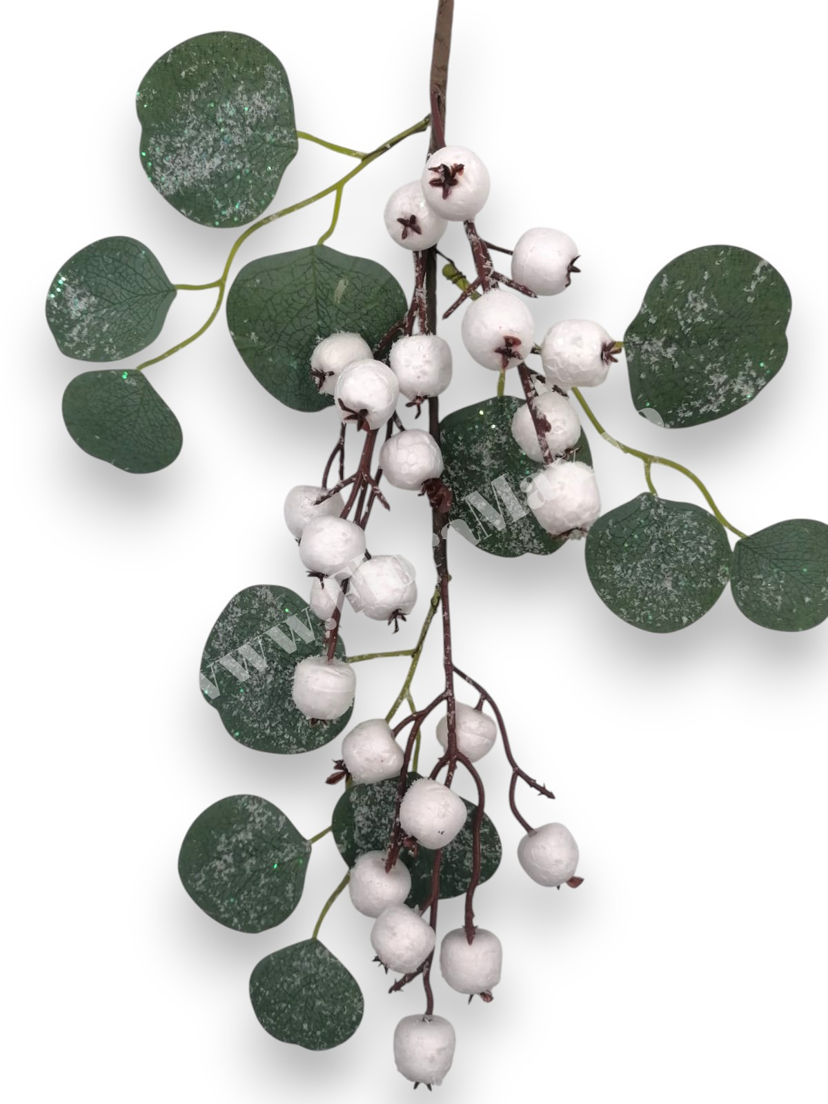 Crenguta pentru aranjamente Craciun cu bilute albe 55 cm