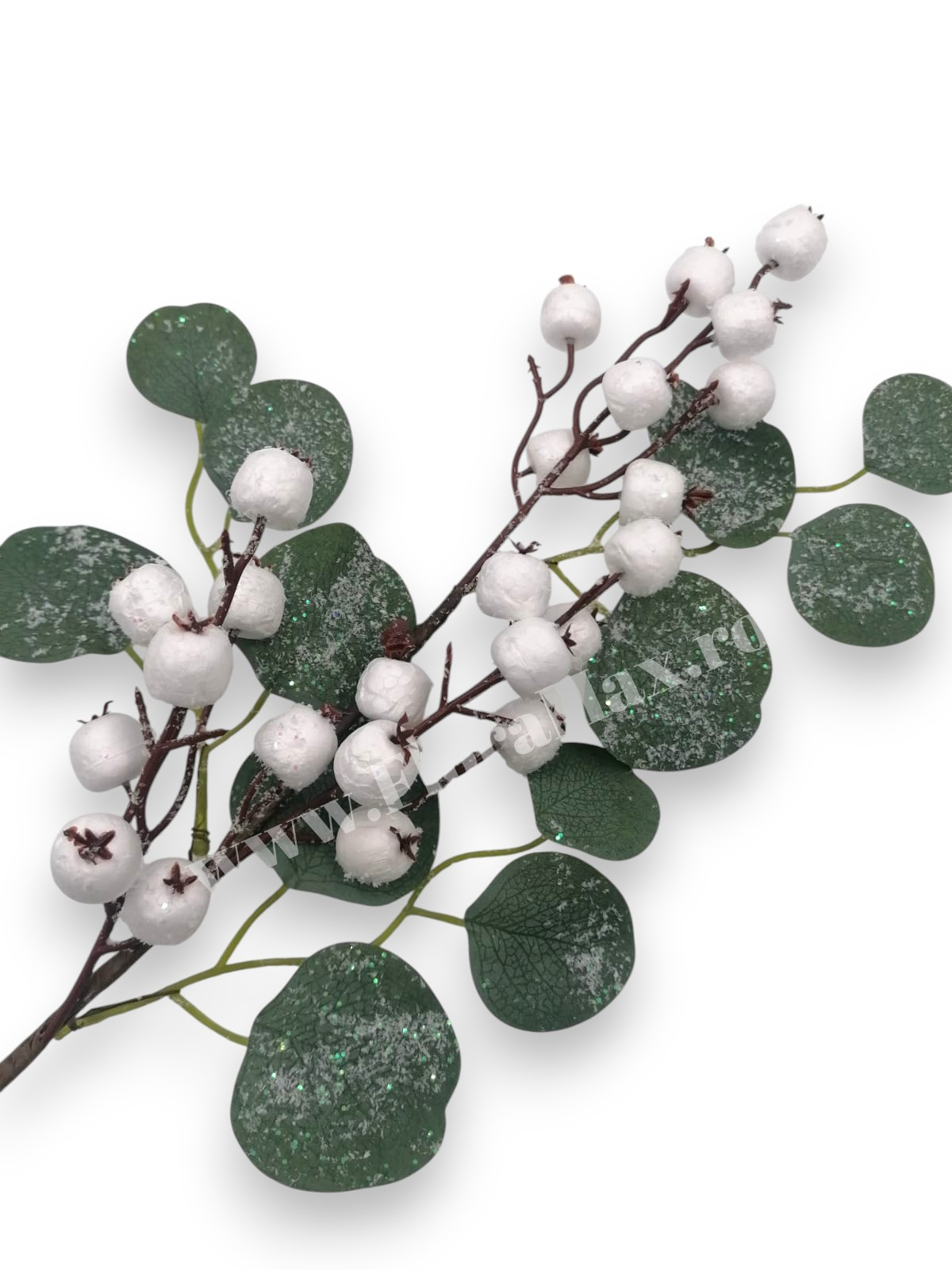 Crenguta pentru aranjamente Craciun cu bilute albe