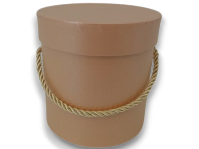 Aceasta cutie cilindrica este accesoriul esential pentru florarii si cadouri premium. Dotata cu un maner tip snur impletit si capac asortat, ofera un mix perfect intre stilul minimalist si functionalitate, fiind ideala pentru aranjamente