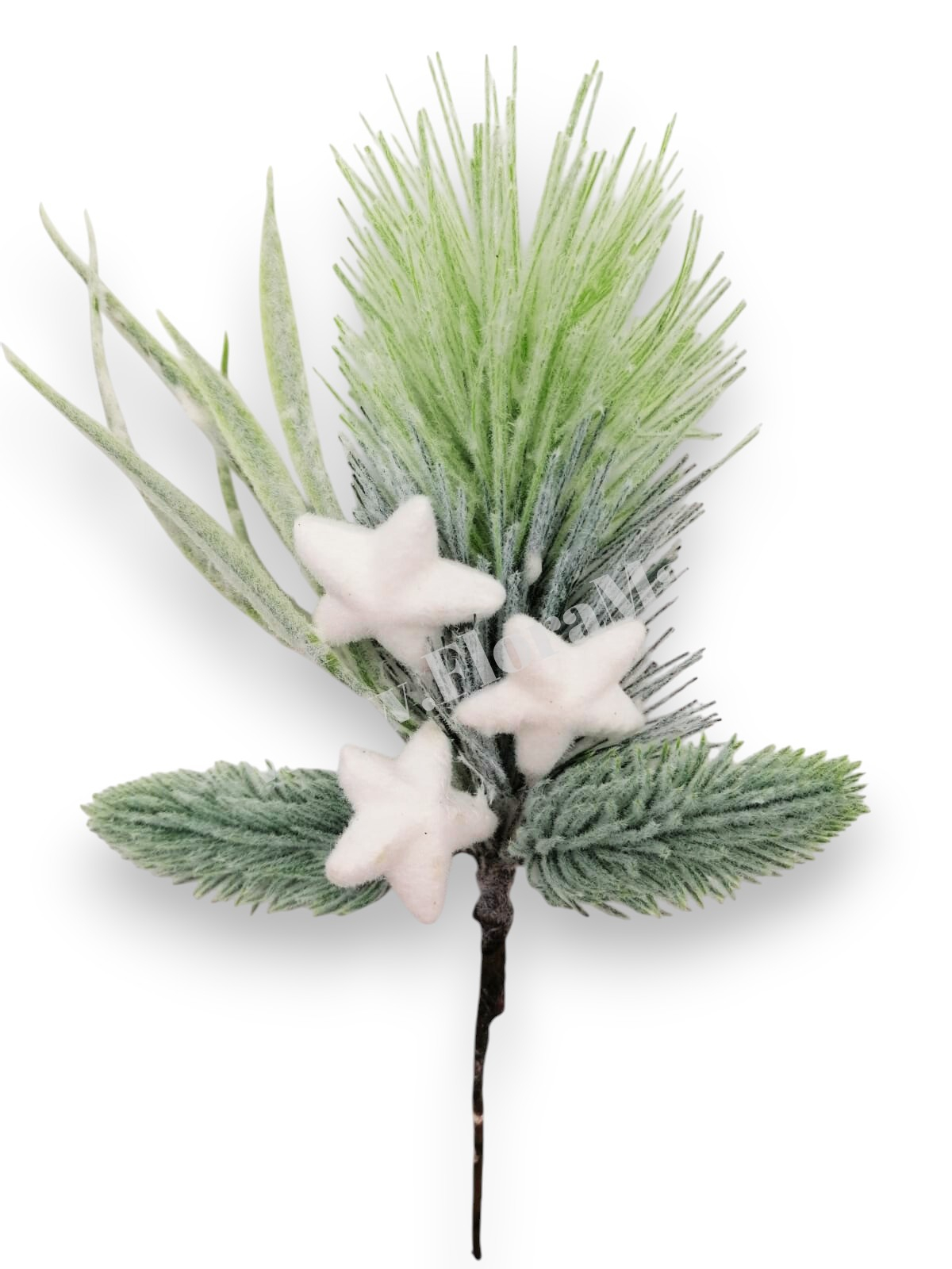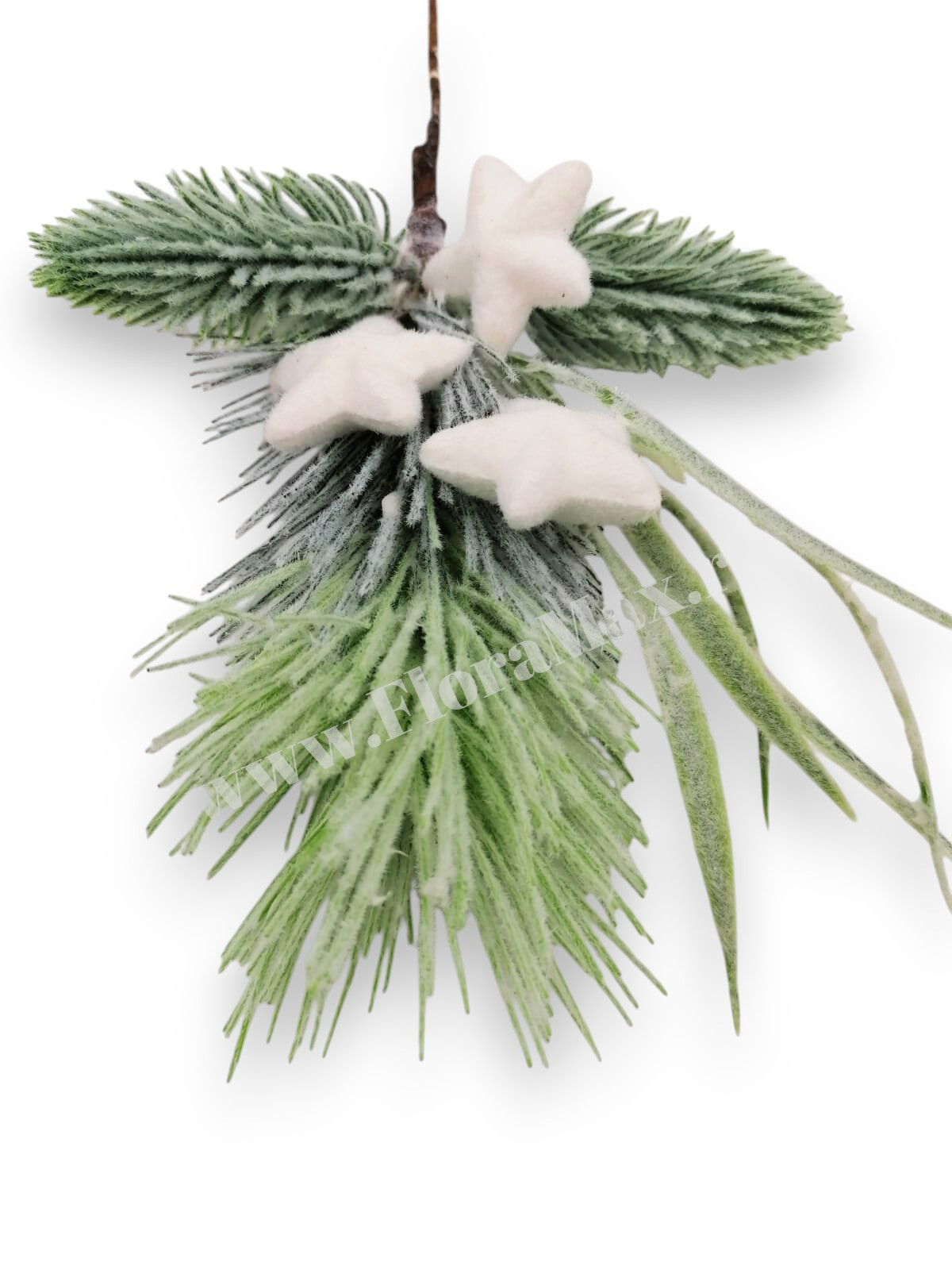 Crenguta brad nins artificial 24 cm cu stele albe, ideala pentru coronite, buchete si decoratiuni de Craciun.