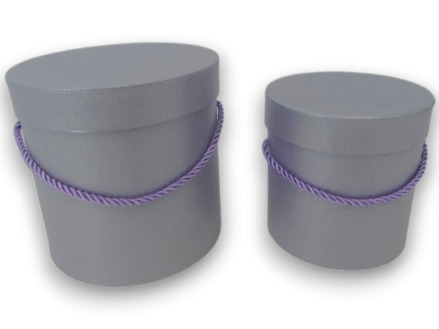 SET 2 cutii cilindru, accesoriul esential pentru florarii si cadouri premium. Dotate cu un maner tip snur impletit si capac asortat, ofera un mix perfect intre stilul minimalist si functionalitate, fiind ideala pentru aranjamente